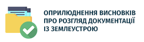 | 5 | Підготовка висновку про розгляд документації із землеустрою, скріплення кваліфікованим електронним підписом, реєстрація у системі електронного документообігу | Експерт державної експертизи | В | Не пізніше сьомого робочого дня з дня реєстрації заяви у відповідному структурному підрозділі територіального органу Держгеокадастру |